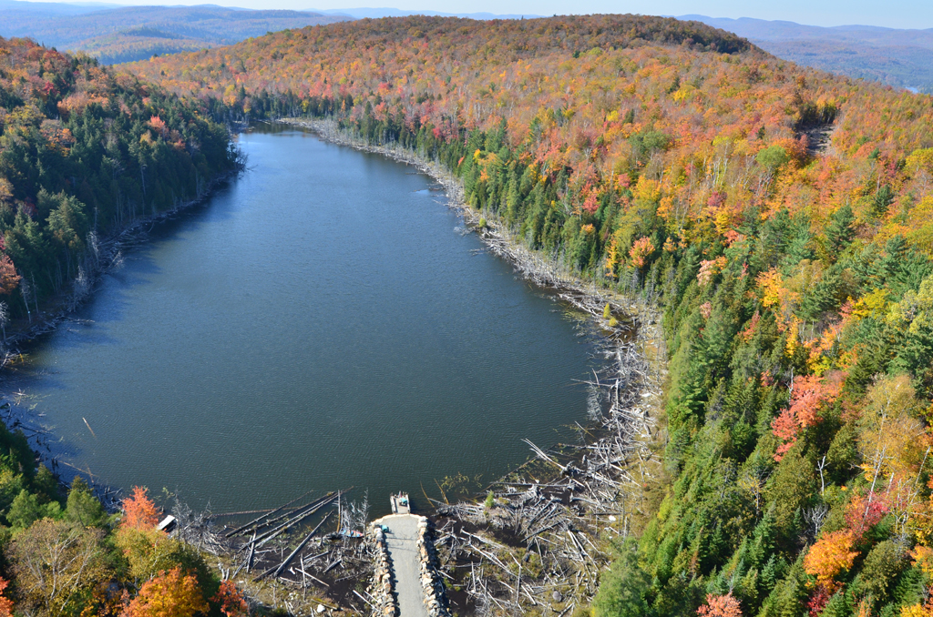 Sur ce site enchanteur de plus de 300 acres de forêt, il y a un lac naturel, un sentier pédestre, une vus panoramique, des chevreuils et d'autres petits animaux. On this enchanting site of over 300 acres of forest, there is a natural lake, a walking trail, panoramic views, deer and other small animals.